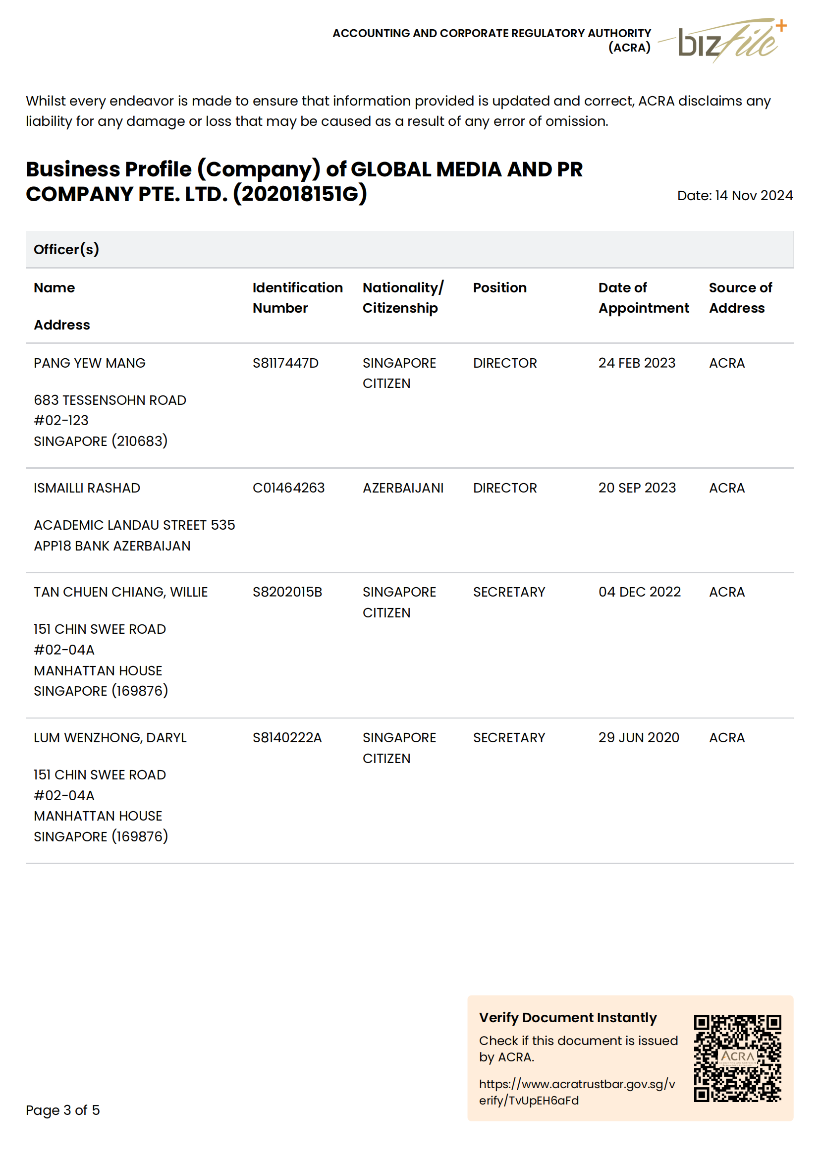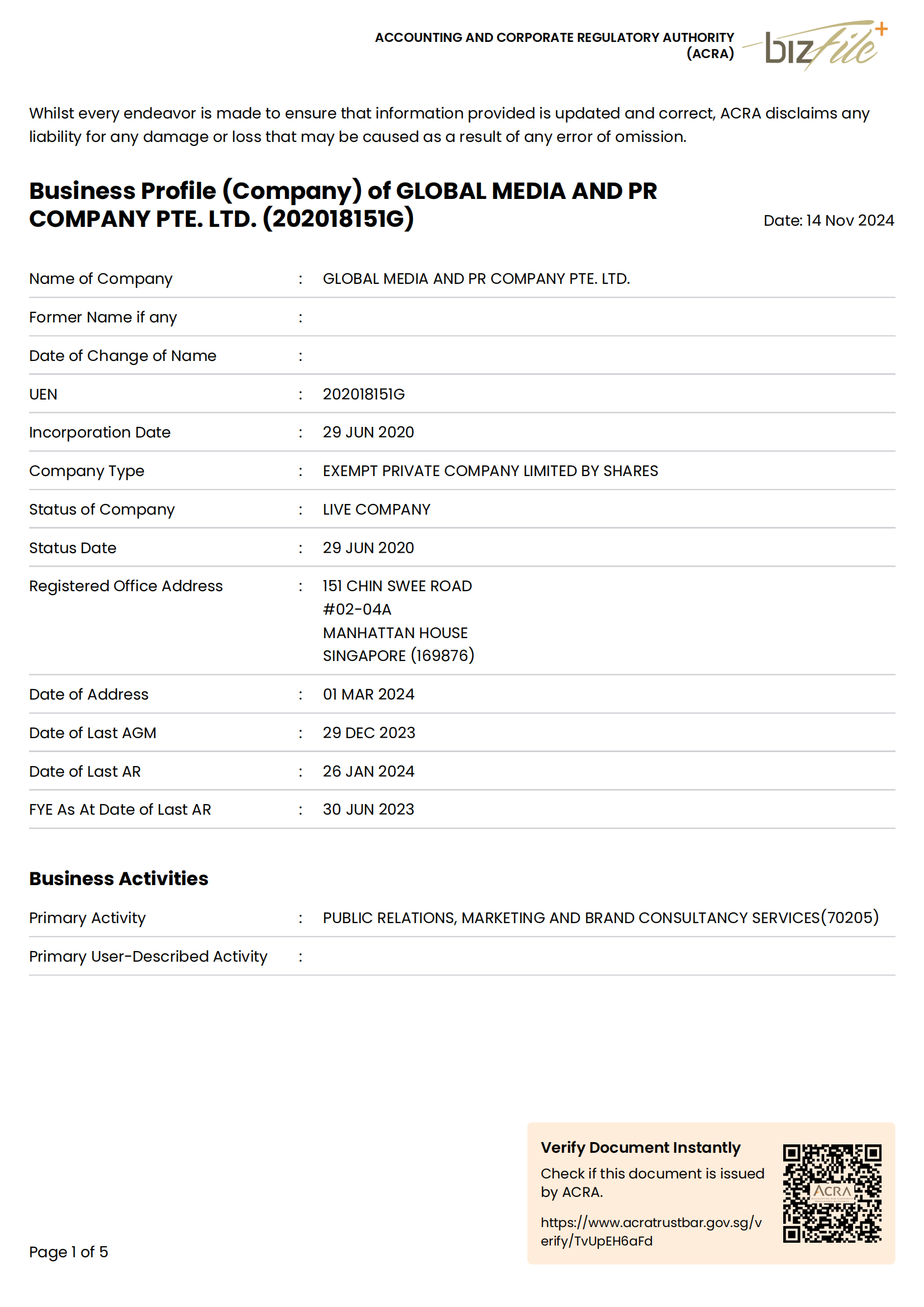 151 CHIN SWEE ROAD #02-04A MANHATTAN HOUSE SINGAPORE (169876)